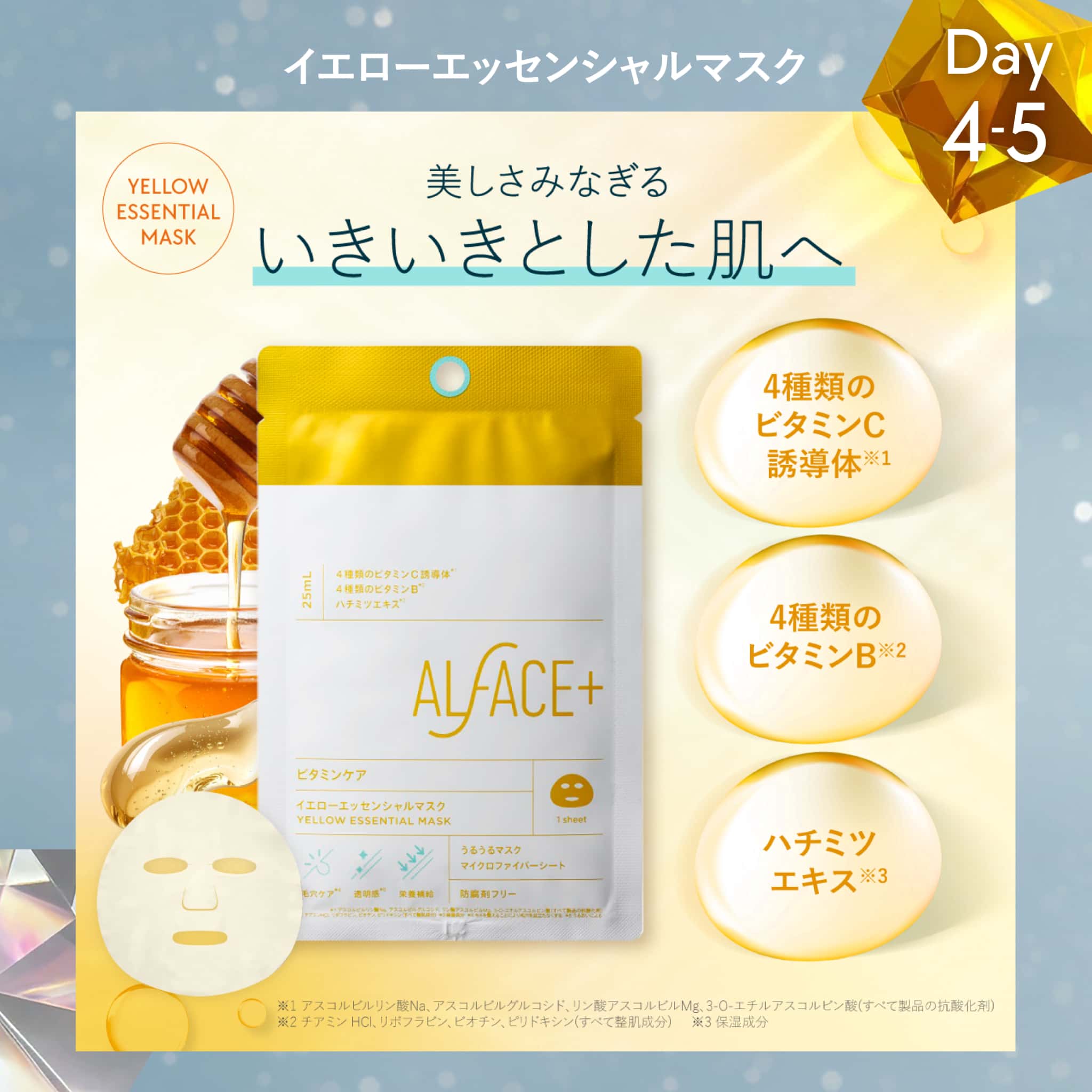 Day4~5 イエローエッセンシャルマスク(毛穴ケア※2・透明感※3)